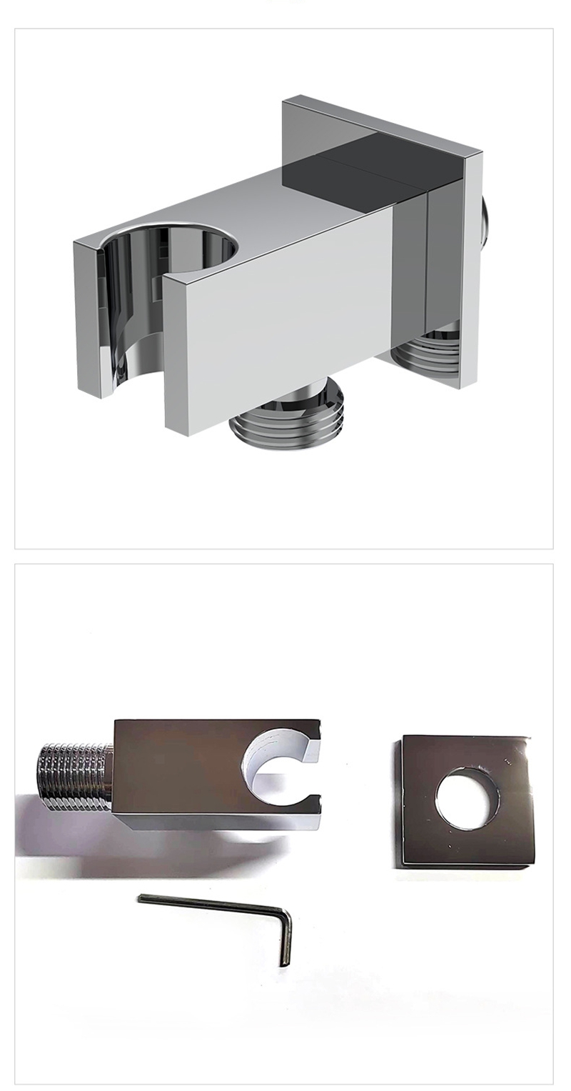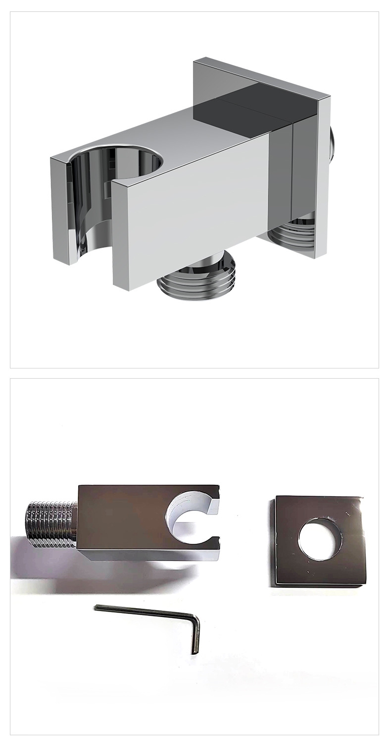 Conception et structure :Possède un profil carré élégant et minimaliste avec une fente renforcée en forme de U pour un placement stable de la pomme de douche et une interface filetée standard pour une connexion transparente aux tuyaux d'alimentation en eau. La conception murale maximise l'efficacité de l'espace, gardant la salle de bain bien rangée et organisée.