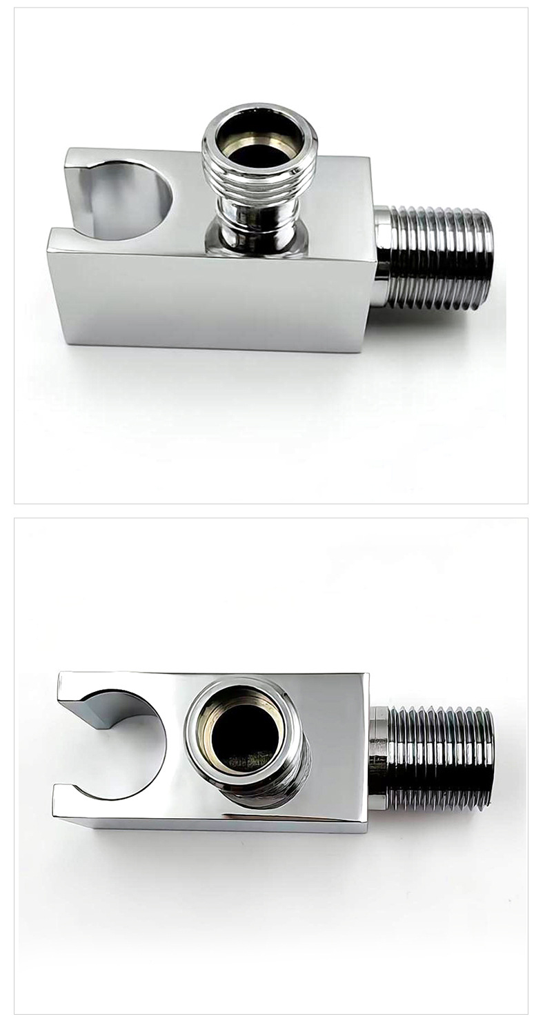 Structure:Équipé d'une fente en forme de U pour placer les pommes de douche à main et d'une interface de sortie d'eau standard G1/2 intégrée sur le dessus, avec une interface filetée externe sur le côté pour connecter les conduites d'eau, réalisant une installation intégrée de l'alimentation en eau et du placement de la douche.
