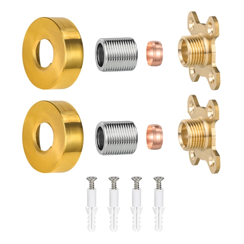 Ce kit de montage de douche rond sert à la salle de bain. Son objectif principal est de fournir une base robuste, plate et facile à installer pour les robinets muraux. Le produit adopte la structure composite du laiton et de l'acier au carbone : la force clé et les pièces de connexion qui sont en contact direct avec le mur et l'interface des robinets utilisent du laiton pour garantir une résistance à la corrosion et une étanchéité à long terme de la connexion ; En tant que structure de support principale, le corps de la plaque est en acier au carbone à haute résistance, ce qui fournit la rigidité de support nécessaire à l'ensemble et empêche la déformation due aux contraintes à long terme. La surface du corps de la plaque est traitée par galvanoplastie et d'autres procédés, montrant un aspect doré et facile à nettoyer. Il est conçu comme un carré standard avec un trou d'installation prédéfini pour correspondre aux accessoires de robinetterie courants et simplifier le processus d'installation.