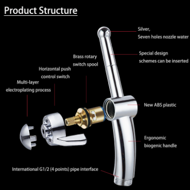 Notre pulvérisateur de bidet est doté d'une buse argentée à 7 trous qui offre un débit d'eau doux, uniforme et puissant. Il assure un nettoyage doux et en profondeur pour l'hygiène personnelle, tout en maintenant une forte pression pour un nettoyage efficace des toilettes et des surfaces, parfait pour tous vos besoins de salle de bain.