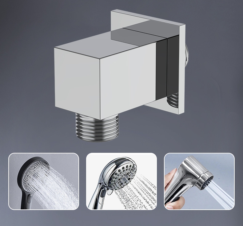 Ce support de douche carré en laiton est un accessoire de salle de bain multifonctionnel qui intègre un support de douche et une fonction de sortie d'eau, spécialement conçu pour l'installation dissimulée de douches à main, avec un design cubique minimaliste moderne.