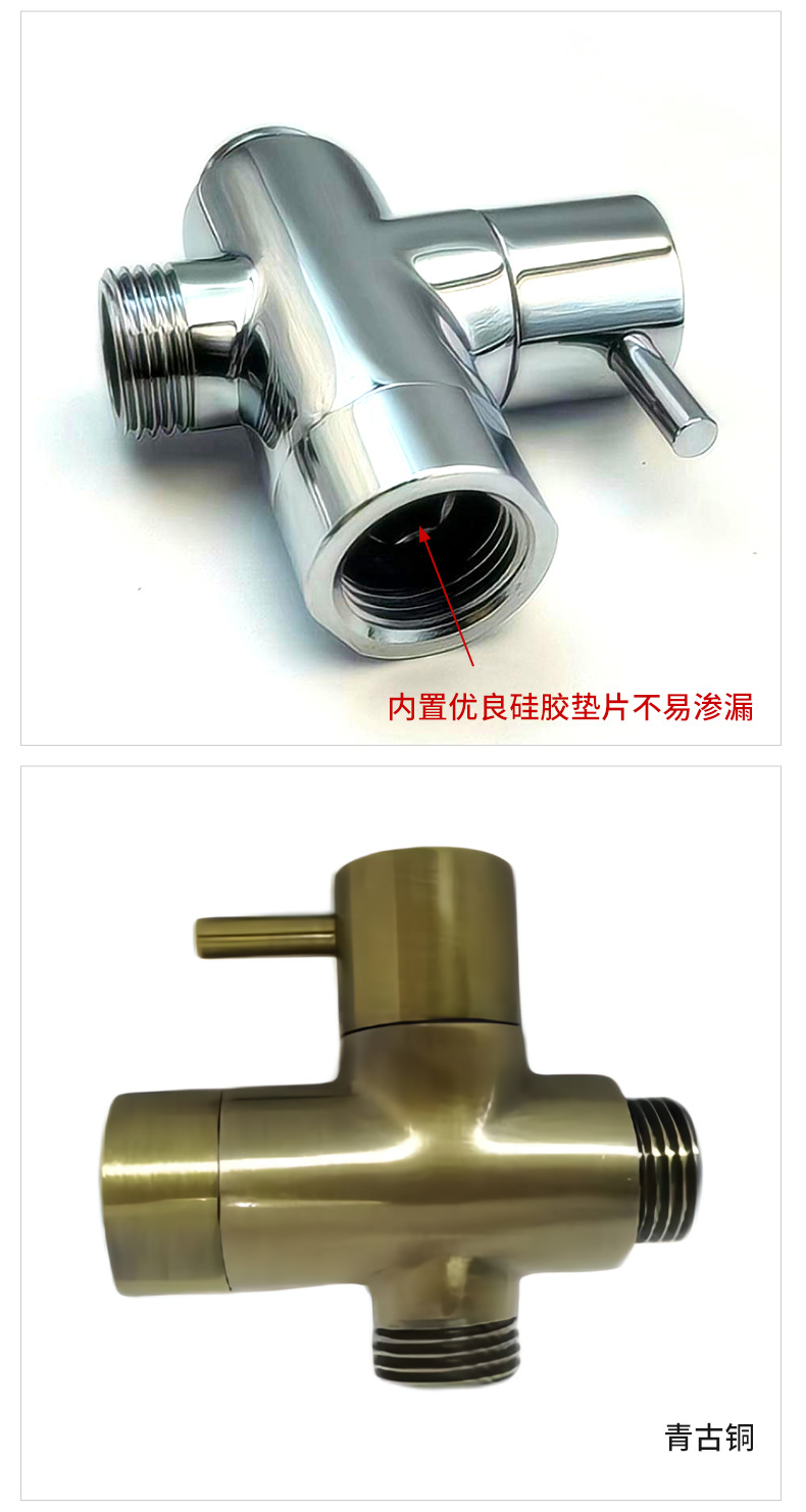 Son objectif principal est de fournir une solution intégrée multifonctionnelle, étanche et facile à installer pour les systèmes de douche de salle de bain, intégrant les fonctions de dérivation d'eau, de contrôle de débit et de support de douche à main dans un seul design compact. Le produit adopte une structure en laiton massif de haute pureté : la voie navigable, les joints filetés, le noyau de valve et les pièces porteuses qui entrent directement en contact avec l'eau et le mur sont fabriqués à partir de laiton de qualité supérieure pour garantir une résistance à la corrosion à long terme, une prévention de la rouille, zéro fuite d'eau et un fonctionnement stable. La surface du produit est traitée par des processus de chromage et de polissage, montrant un aspect chromé brillant semblable à un miroir, antisalissure, résistant aux empreintes digitales et facile à nettoyer.