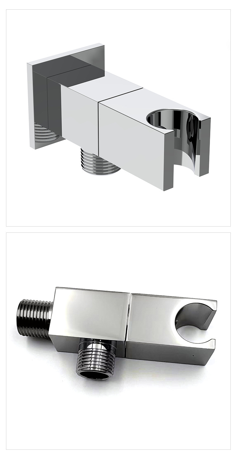Son objectif principal est de fournir une base robuste, plate et facile à installer pour les douches à main murales encastrées. Le produit adopte une structure en laiton massif épaissie : la force clé et les pièces de connexion qui sont en contact direct avec le mur et l'interface de douche utilisent du laiton forgé de qualité supérieure pour garantir une résistance à la corrosion et une étanchéité à long terme de la connexion ; En tant que structure de support principale, le corps du support est en laiton massif à haute résistance, ce qui fournit la rigidité de support nécessaire à l'ensemble et empêche la déformation due aux contraintes à long terme. La surface du corps du support est traitée par des processus de polissage et de chromage, montrant un aspect chromé brillant, antisalissure et facile à nettoyer. Il est conçu comme un carré standard avec des trous d'installation standard prédéfinis de 1/2" pour correspondre aux accessoires courants de robinet et de douche, simplifiant ainsi le processus d'installation.